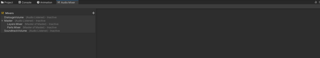 Unity has an object known as “Audio Mixer”. It allows us to have easy time manipulating audio on runtime, allowing us to create such things as audio volume settings or dynamicly mix layers of soundtracks.